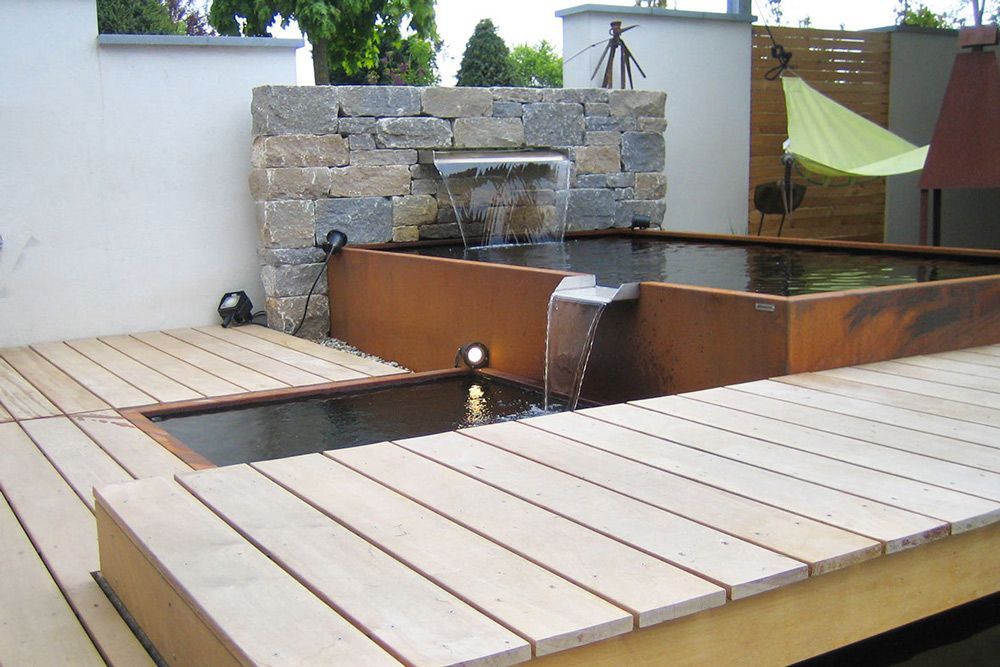 Beliebt sind Holzdecks am Pool oder als Terrassenbelag: Barfußfreundlicher als Stein- oder Betonbeläge und mit warmer Ausstrahlung. Bei Terrassendielen aus Holz gibt es Materialien, die bis zu 25 Jahre halten und sich mit der natürlichen Beschaffenheit angenehm anfühlen. Chemisch umgewandelte Holzdielen, die oft bei Holzbelägen eingesetzt werden, sind wartungsfrei. Holzdecks sind eine gute Alternative zu Plätzen und Terrassen aus Beton oder Stein.